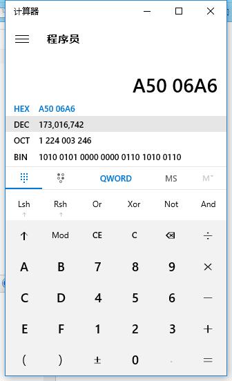 打开开始菜单中选择计算器,设置计算器类型为程序员